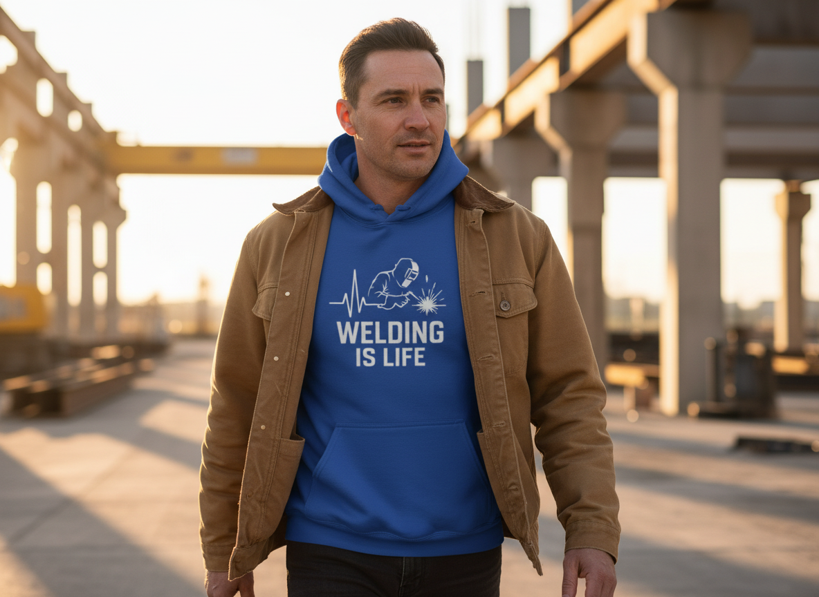 Our gear is designed by a welder who wears it in the booth. While these are lifestyle apparel (not FR-rated PPE), they’re built with heavy cotton and quality construction that can handle the shop environment when you’re not actively welding. Think of them as what you wear before you throw on your leathers, or what you rock after work to rep the trade. They’re durable enough for daily shop life, but always wear proper PPE when striking an arc.